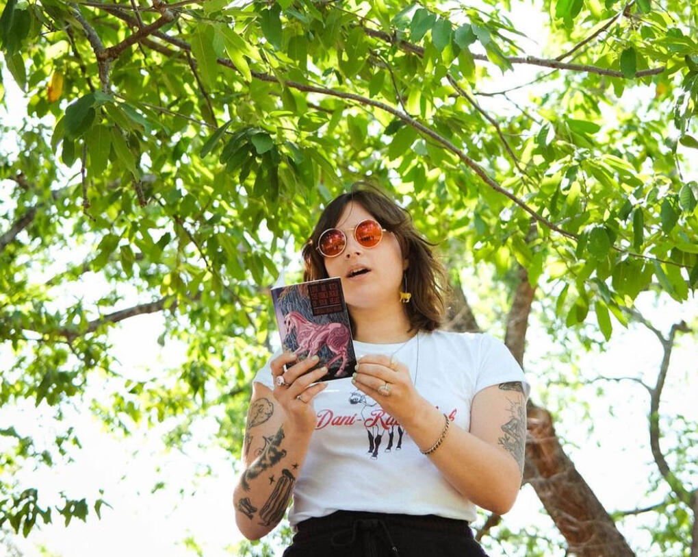 Originally from the ancestral lands of the Osage Nation and the Illini (St. Louis, Missouri), Gabrielle Grace Hogan (she/her) received her MFA from the University of Texas at Austin in 2022. Her poetry has appeared or is forthcoming in TriQuarterly, The Journal, Muzzle, Salamander, Missouri Review, and others. She is the author of the chapbooks Soft Obliteration (Ghost City Press 2020) and Love Me With the Fierce Horse Of Your Heart (Ursus Americanus Press 2023), and has had her work supported by the Ragdale Foundation, Tin House Workshop, the Kenyon Review Writers Workshop, and the Hambidge Center for the Creative Arts and Sciences.She is an assistant poetry editor at Foglifter, and a team writer at Autostraddle. She is currently working on her first manuscript.Her work prioritizes lesbian visibility, for all who fall under the label's umbrella.She lives on the ancestral lands of the Council of the Three Fires (Chicago, IL) with her girlfriend and their two cats, Moth and Ghost.